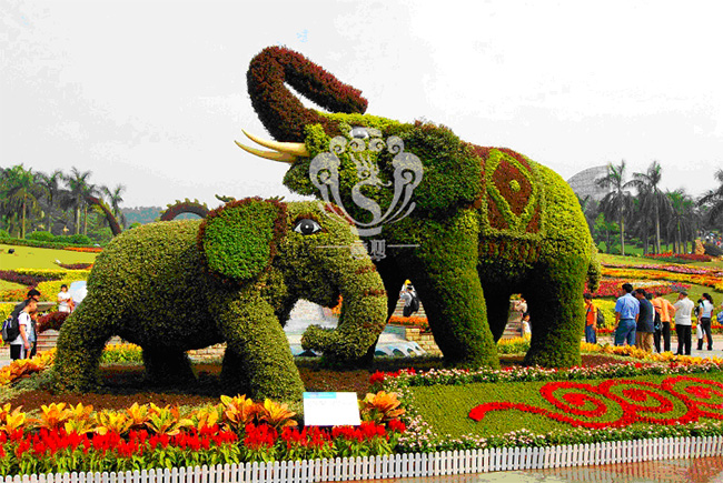 第二就是雕塑生物。他的制作工藝、材料分兩種,1、玻璃鋼材質,2、水泥雕塑。制作時還是需要鋼材作為生物的骨架,然后附上玻璃鋼、水泥雕塑的皮膚。這樣的生物可以做成不同的姿態,栩栩如生。但是他做不了機械運動。他就是一只固定的生物雕塑。
