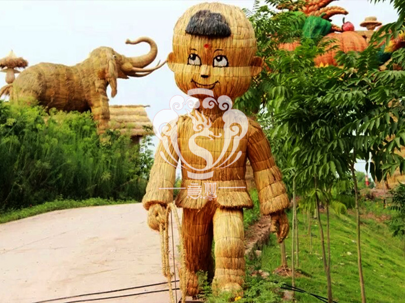 現在的精致稻草人藝術通常是由專業美術老師的造型放樣,然后由焊工師傅焊接出立體造型造型,然后以稻草或者稻草繩為材料編捆制作而成。