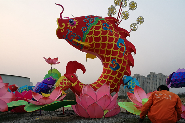 一組“年年有余”燈組需要多達10人聯合制作才能完成