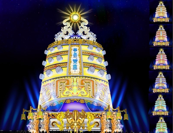 園內130余組彩燈凸顯“高大新奇美”的彩燈藝術特色,《普天同慶》、《華夏樂章》、《盛世華章》等巨型彩燈體量震撼,如畫似景。多年未出現的瓷器燈、竹編燈、玻璃瓶燈組精彩呈現,體現了自貢燈會的獨特魅力。大體量、集群式燈組繽紛奪目,編鐘燈組重達102噸,大孔雀燈組高達22米,創造了大型燈組的歷年之最,將給觀眾帶來驚喜。