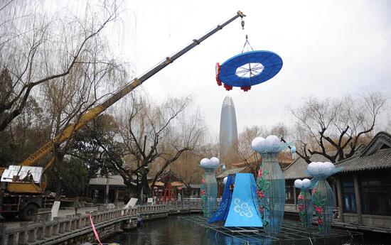 趵突泉安裝花燈迎春節,大年初一正式亮燈