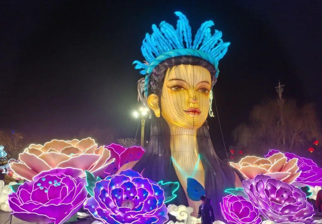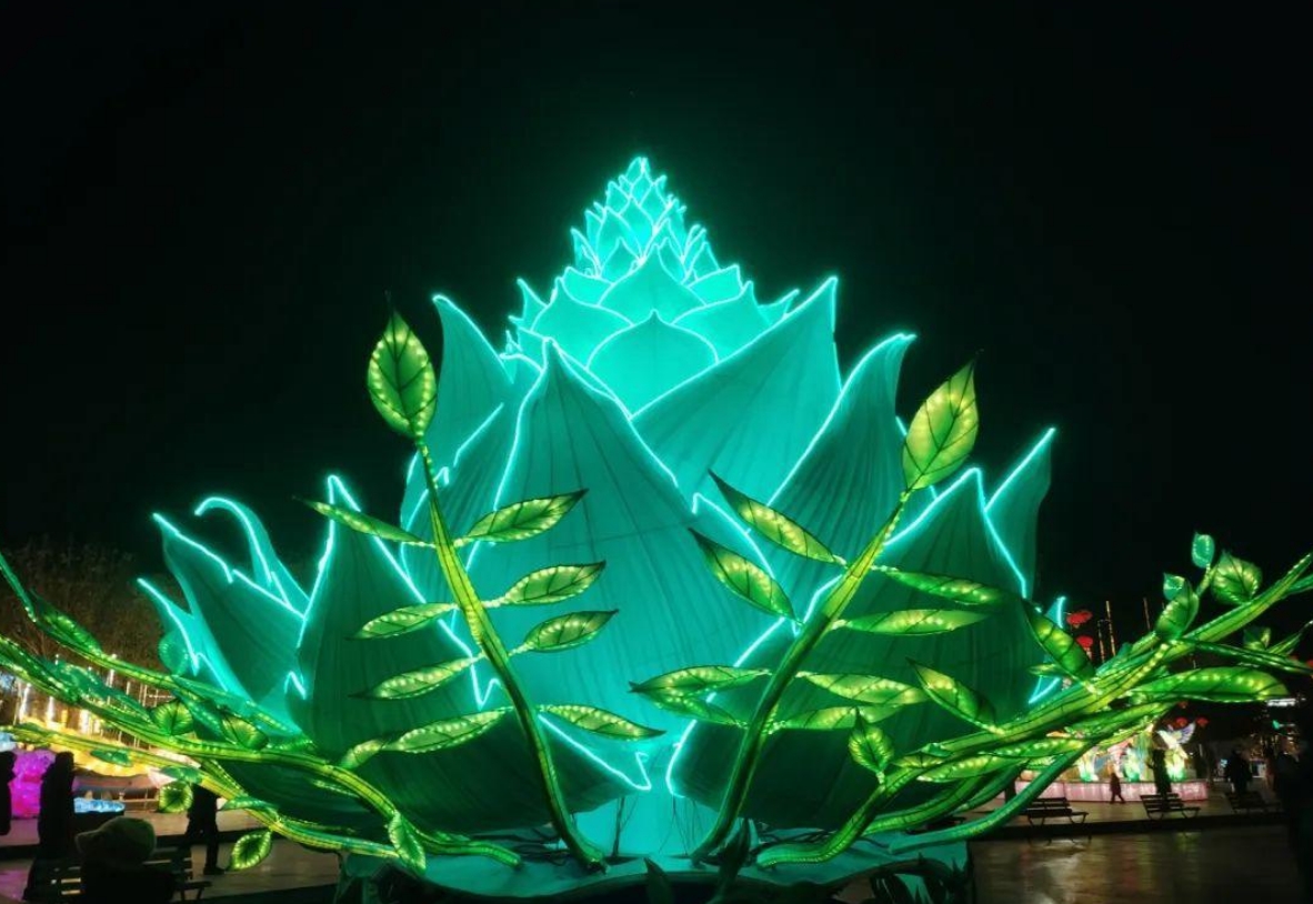 大型燈組“龍騰盛世”,創意源于朝陽三燕龍城宮城南門遺址,城門兩側設置雙龍騰躍的龍年主題造型,寓意龍騰盛世的繁華景象,體現朝陽作為三燕古都的厚重歷史?!敖鸩綋u”主題燈組,創意源于三燕時期的精美文物—花樹狀金步搖,這是當時慕容鮮卑佩戴的一種特有裝飾物,是古代絲綢之路東傳的實物例證,具有鮮明的北方民族特色文化?!皩m燈柱”燈組裝飾在廊道兩側,打造出穿越三燕龍城的時光隧道,彰顯朝陽三燕時期龍城盛世的景象。大型燈組“紅山女神”,是以在朝陽牛河梁遺址出土的紅山女神復原雕塑為創意創作,讓市民游客在觀燈的同時還能深入了解朝陽作為“文明發端地、古國牛河梁”的悠久歷史。大型燈組“世界上第一只鳥”“世界上第一朵花”,是以中華龍鳥、遼寧古果造型為主題創作,讓廣大游客感受朝陽古生物化石的神奇與魅力。大型燈組“鳳鳴朝陽”,創意源于《詩經·大雅·卷阿》的典故,展現雍容祥和景象。