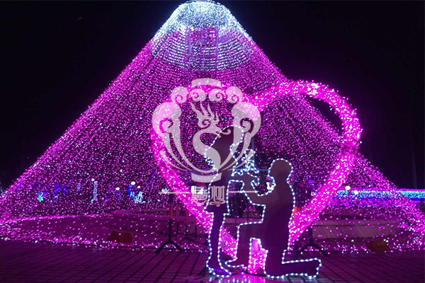 炫目迷人的“時光隧道”,猶如夢開始的地方,穿越隧道闖進奇幻的迷霧森林,夢幻旅程由此悄然開始……夢幻燈光節為大家呈現了高達6米的夢的翅膀,山頂皚皚白雪凸顯著圣潔,乘風破浪的愛情號,快帶著他(她)駛進愛的海洋;灰姑娘的水晶鞋,震撼的燈海等20多種造型,那一望無際的燈海仿佛寬廣的海洋溫柔的擁抱你我……