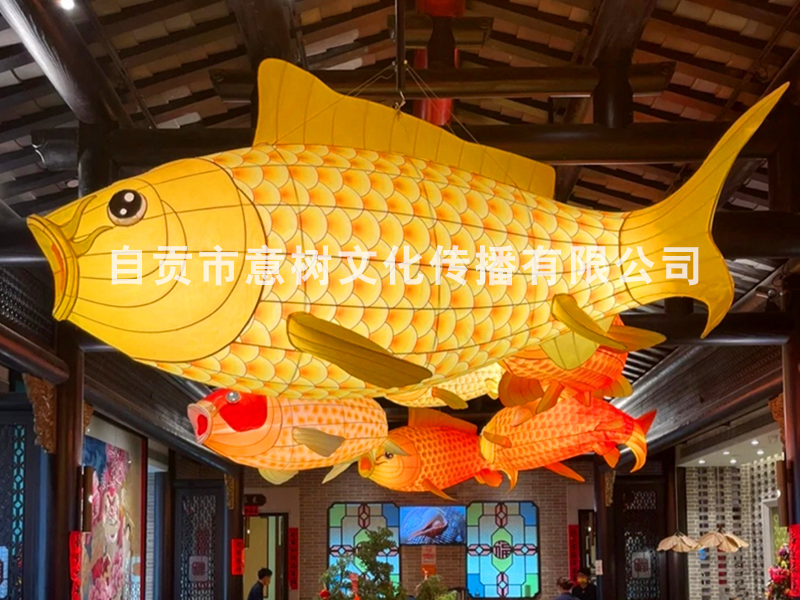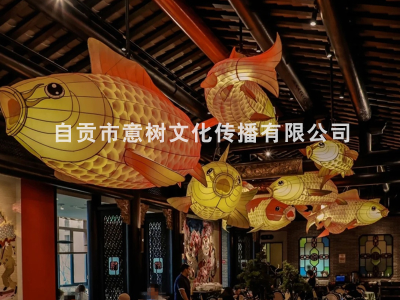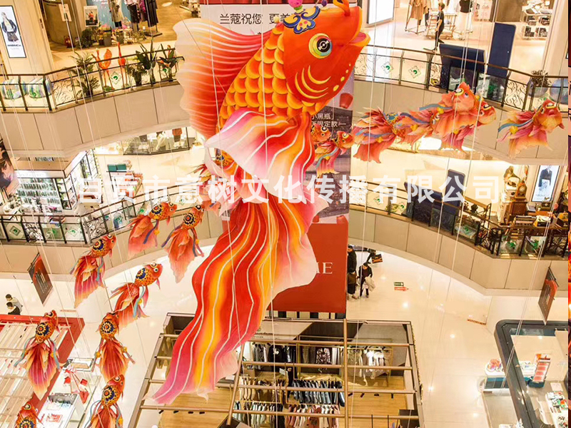 自貢市意樹文化傳播有限公司,采用獨(dú)特的絲藝造型,在形態(tài)上變化多變。經(jīng)過一個(gè)月工人的努力,為重慶某個(gè)大型商場制作的中庭魚燈終于安裝落地完成,深深的受到商場領(lǐng)導(dǎo)的稱贊,也得到了商場顧客的立足觀賞、點(diǎn)贊。